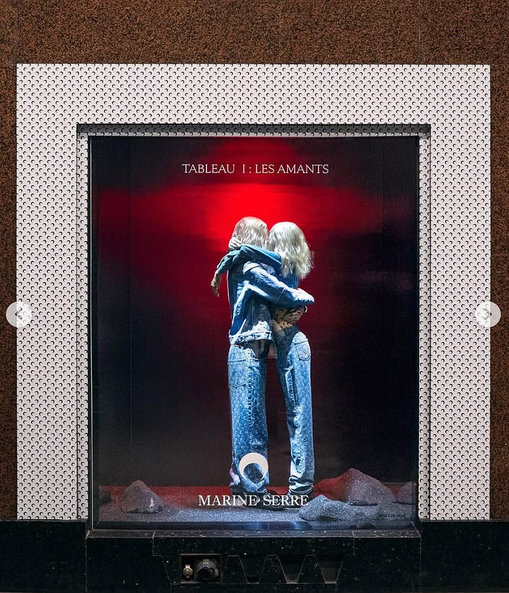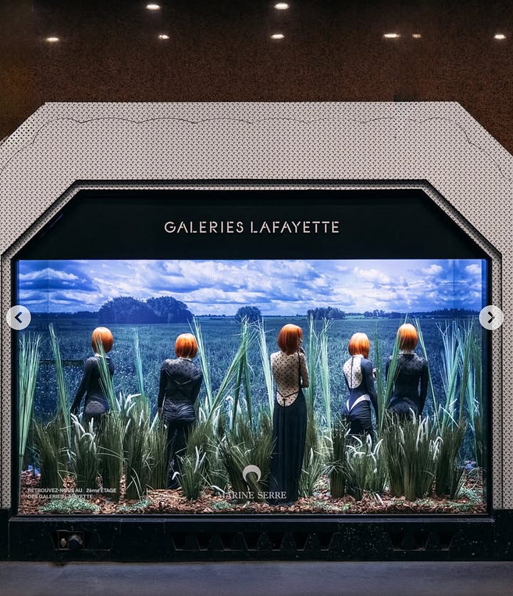 Com um pouco de atraso, trago aqui pra contemplação as vitrines da estilista francesa Marine Serre na Galeries Lafayette, em Paris. Cada uma conta uma história, é um momento suspenso. Fora que os manequins também são uma inovação, saem daquela pose estática e agora até escalam montanhas ; ) As vitrines estão cada vez mais inovadoras e usam esse espaço super hiper premium para contar histórias e não apenas para mostrar looks.