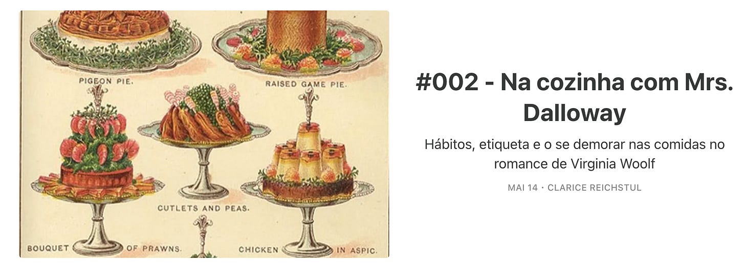 Minha amiga Clarice Reischstul lançou uma newsletter deliciosa de ler. Deus Fez a Comida o Diabo Os Cozinheiros, que mistura comida e literatura. Tudo que a Cla faz, ela faz bem e com originalidade. Vale super acompanhar.